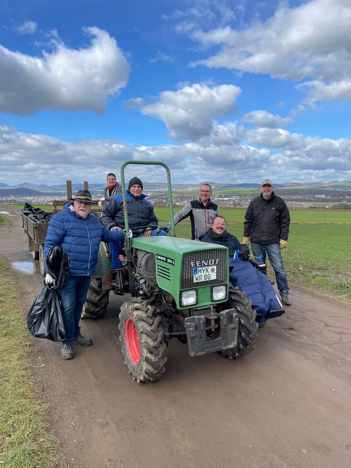 Selbstverständlich stellte der 1. Vorsitzende Wolfgang Höfer wieder ein großes Team aus Mitgliedern -innen der FWG Kettig zusammen, um die Flurbereiche rund um Kettig von Müll zu reinigen. Ganz stark ist hier auch der Einsatz von Traktoren und Anhängern des FWG Ratsmitglieds Werner Schmorzleitz zu erwähnen. (siehe Foto)