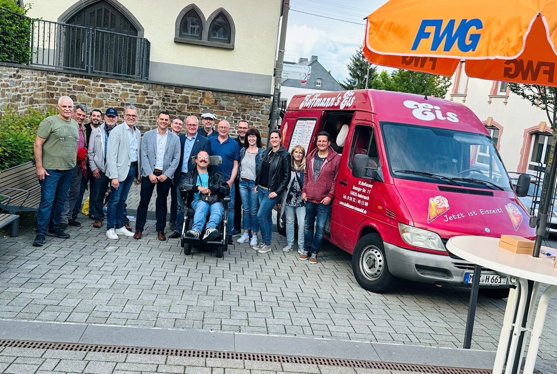 Der Bürgermeisterkandidat der FWG Kettig, Florian Heyden begleitet mit seinem FWG Team das Eismobil zu den verschiedenen Stationen. Es ist ihm wichtig zu den Bürgerinnen und Bürgern zu kommen und bei einem leckerem Eis sich vorzustellen und mit den Bürgern auszutauschen.