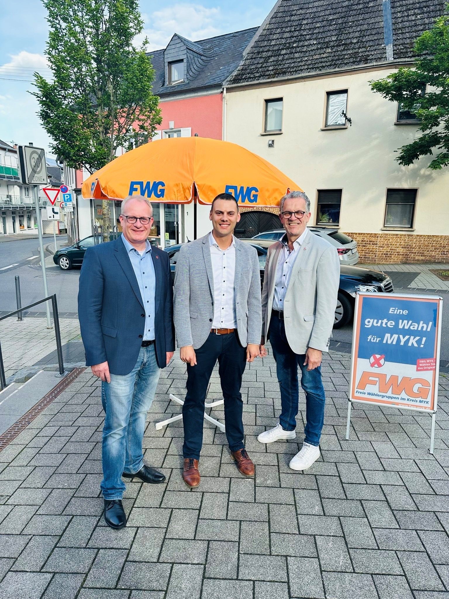 Besonders gefreut hat uns der Besuch von Gerd Harner, dem FWG-Bürgermeisterkandidaten für Mülheim-Kärlich und Michael Holstein, dem Verbandsbürgermeister von Trier Land, Fraktionsvorsitzender der Feien Wähler im VG- Rat und Vorsitzender der FWG Trier-Saarburg e.V..
