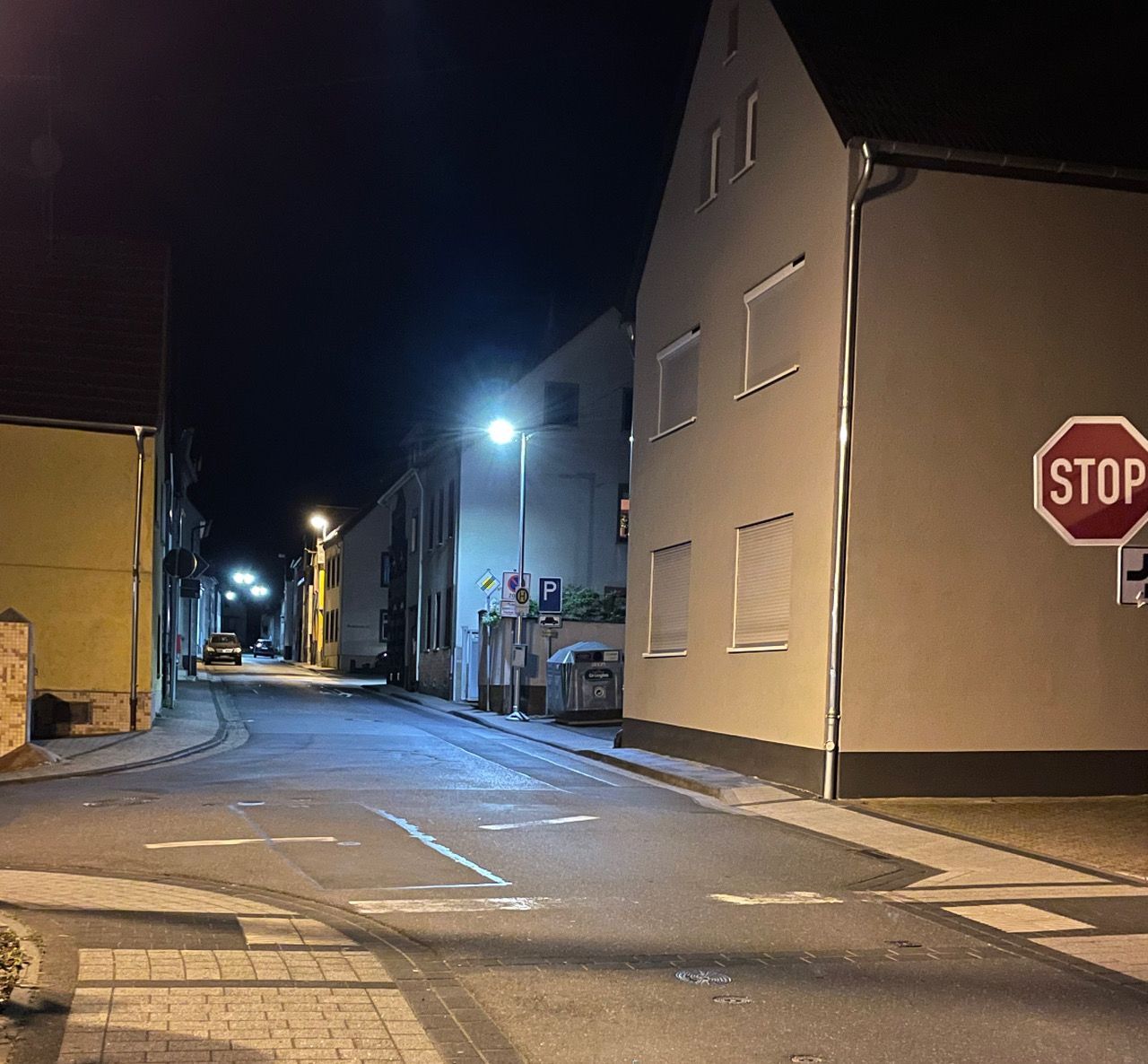 Die FWG Kettig stellte eine mündliche Anregung für eine zusätzliche Straßenlaterne an die Verwaltung. Diese neue Laterne wurde im April installiert und leuchtet – auf dem Foto sehr gut erkennbar - diesen stark befahrenen Mündungsbereich gut aus.
